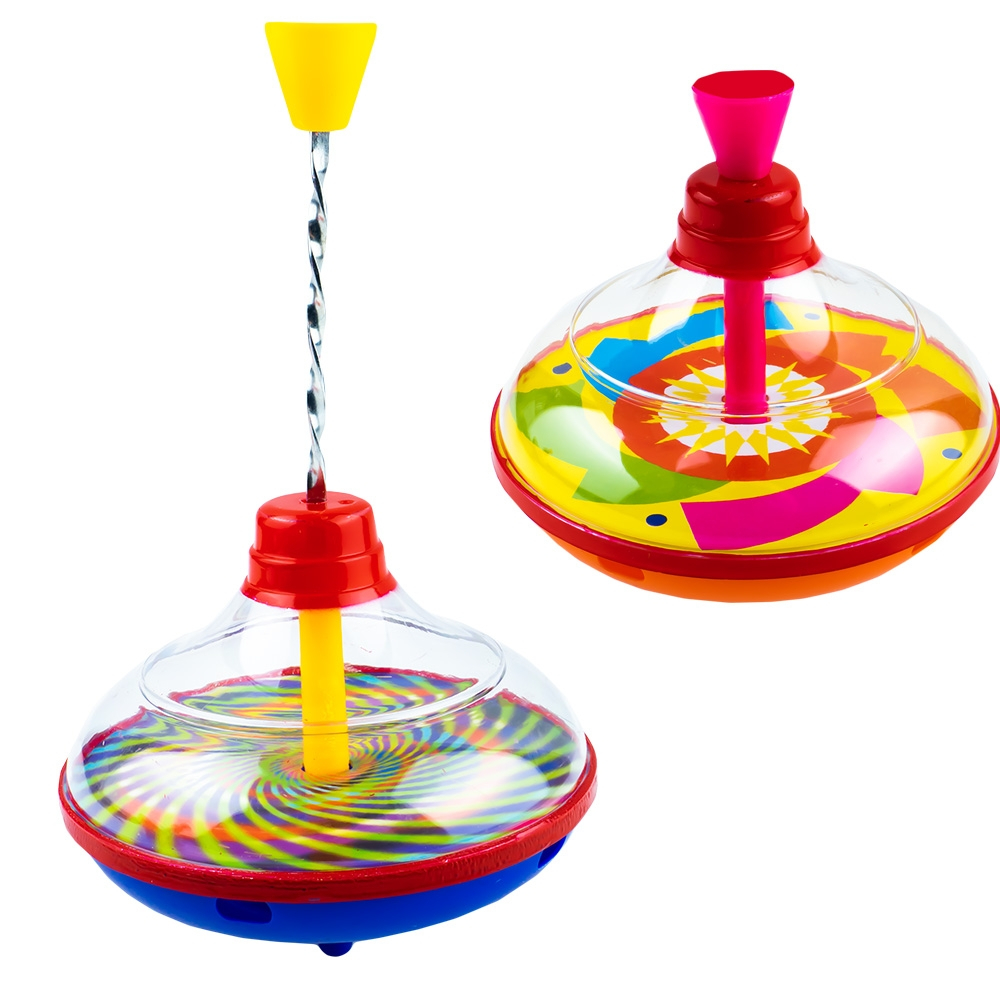 Aceasta jucarie fascinanta creeaza amestecuri de culori interesante pe masura ce se roteste. Nimeni nu poate rezista acestui obiect cu rotire grozava, usor de utilizat, prin apasarea tijei centrale.