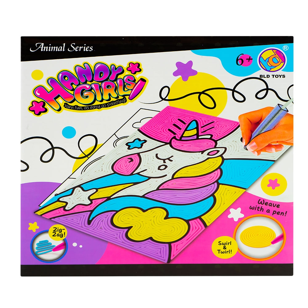 - Setul este super dragut, oferind copiilor o experienta cu rezultate deosebite. Aplicarea firelor textile dupa numere este un mod foarte simplu si sigur de a a realiza tablouri de catre cei mici. Prin simplitatea sa, acest sistem este una dintre cele mai bune experiente artistice pe care le putem oferi copiilor, deoarece acestia vor putea crea imagini intr-un mod ghidat.