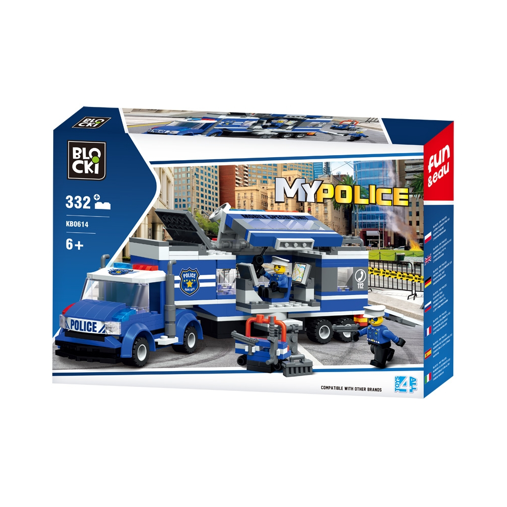 - Setul de constructii Blocki My Police, Brigada de politie mobila este format dintr-un vehicul transportator de politie, doua figurine politisti si accesorii.