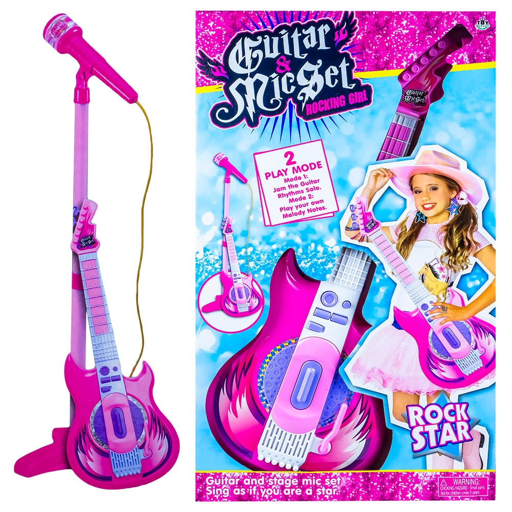 O chitara electrica cu microfon este o jucarie perfecta pentru viitoarele vedete rock. In plus, posibilitatea de a conecta un player MP3 sau un telefon va permite sa redati muzica preferata. Dezvoltati latura artistica si creativitatea, incurajand copiii sa experimenteze acest set muzical!