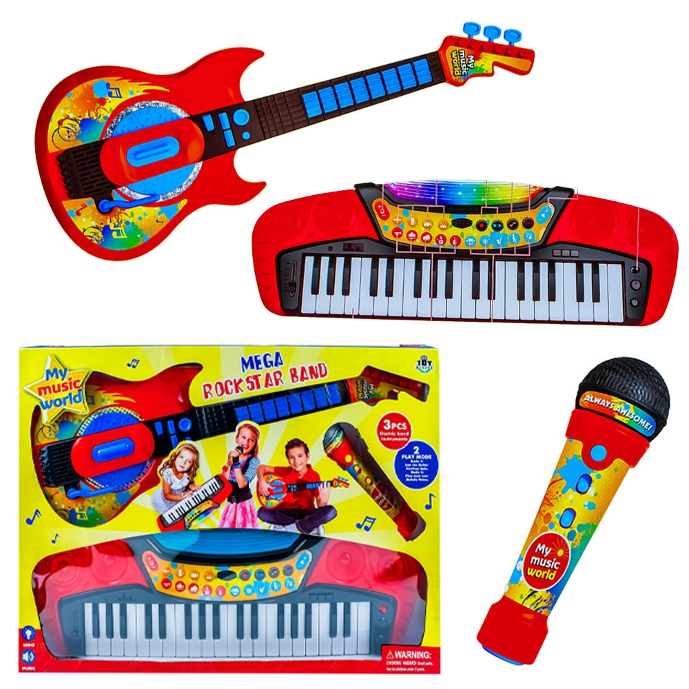 - Orga functioneaza cu 3 baterii AA, 1,5 V (nu sunt incluse). Chitara este alimentata de 3 baterii AA, 1.5V (nu sunt incluse), facandu-o usor de utilizat oriunde si oricand. Microfonul necesita, la randul sau 3 baterii AA, 1.5V (nu sunt incluse). Bateriile se introduc in spatiul destinat in pozitia corecta, respectandu-se polaritatea, numai de catre adulti. Compartimentele bateriilor trebuie sa fie curate. Bateriile epuizate se schimba si se recicleaza conform normelor in vigoare. In cazul neutilizarii jucariei pentru mai mult timp, se scot bateriile pana in momentul refolosirii.