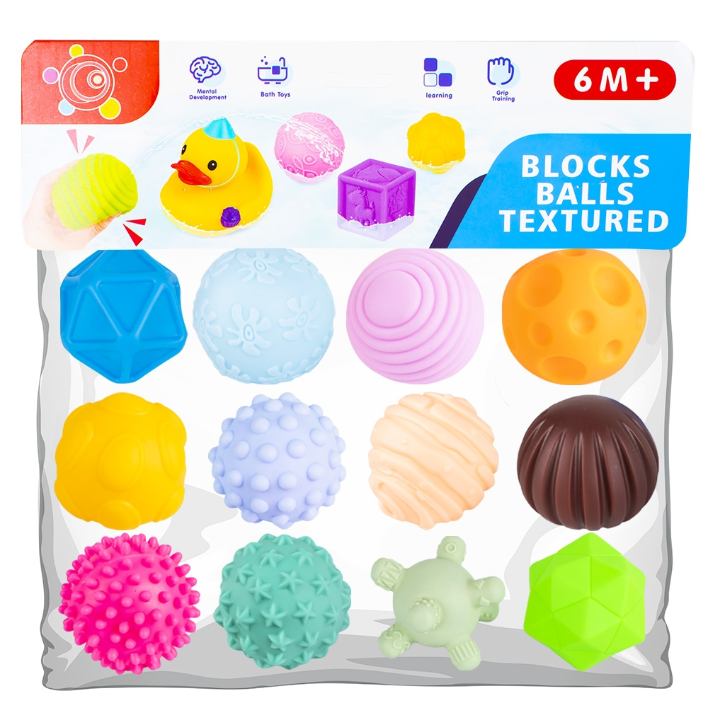 - Setul contine 12 mingi senzoriale.