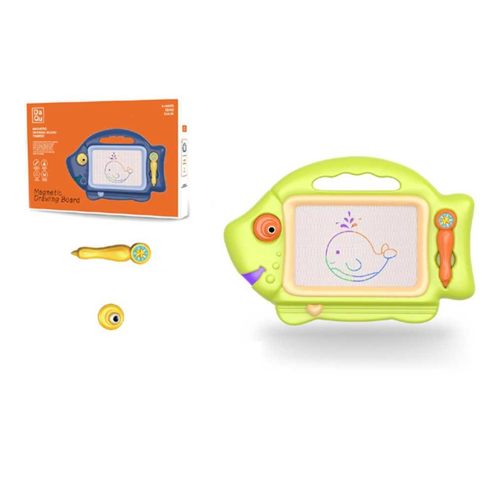 - tablita functioneaza datorita fortei magnetice: copilul deseneaza cu un stilou special (varful are un mic magnet) iar pe tablita se contureaza un desen magic. Cand cel mic vrea sa stearga desenul, va trece glisorul pe toata lungimea si desenul va disparea ca prin minune. Tablita este accesorizata cu o stampila magnetica. Tablita este ideala pentru copii, intrucat micutii pot desena la nesfarsit fara sa se murdareasca