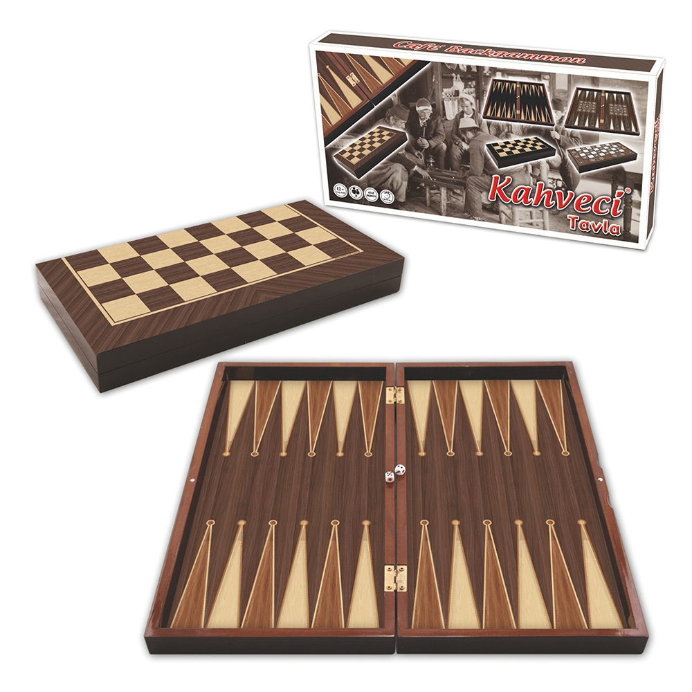 - Tabla de joc beneficiaza de o constructie de inalta calitate, avand cadrul solid din lemn de nuc si suprafata de joc din lemn stratificat lucios. Suprafata de joc, neteda este realizata in nuante maro contrastante si are pe interior 2 randuri opuse, cu cate 12 sageti, pentru jocul de table si pe exterior 8/8 patrate bej alternate cu maro, pentru jocul de dame. Suportul de joc este proiectat inteligent, pliindu-se pentru o depozitare convenabila. Tabla are inchidere magnetica si doua balamale metalice.
