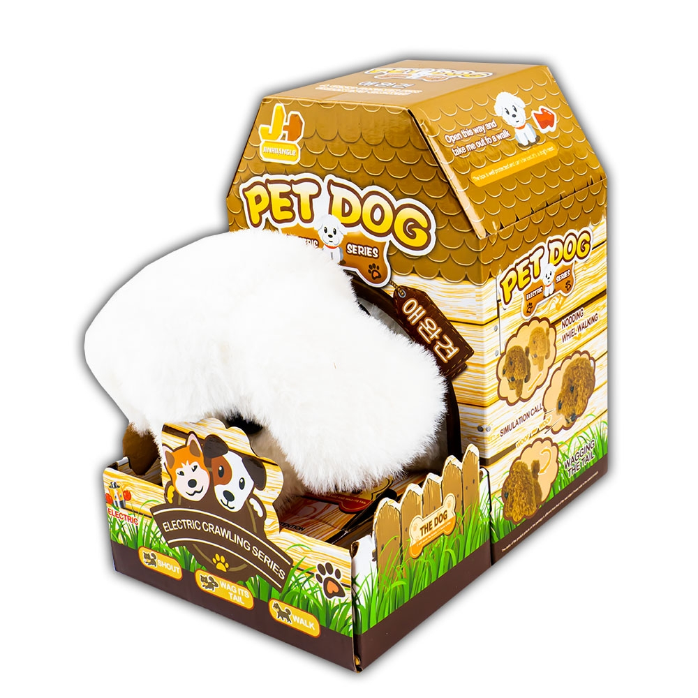 Simpaticul catel din plus da din cap si coada in timp ce se deplaseaza inainte, iar din cand in cand scoate sunete. Cadoul perfect pentru copii!
