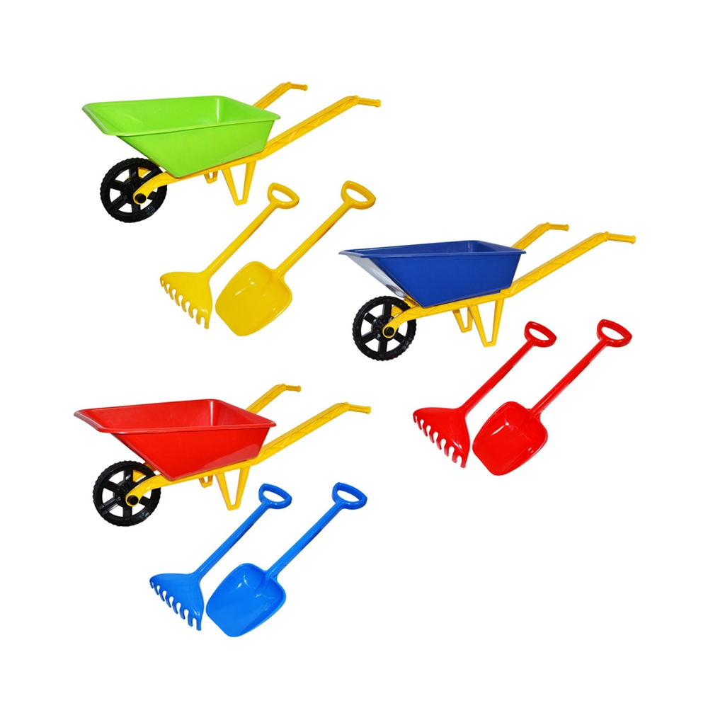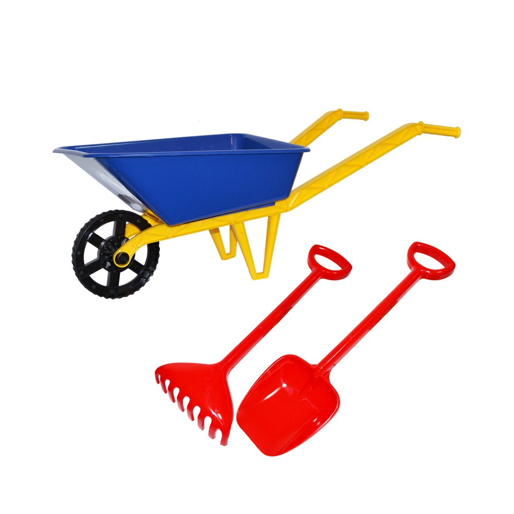 - Acest set de jucarii este foarte practic si simpatic, lopata si grebla gasindu-si perfect locul alaturi roaba care este usor de impins si va oferi celor mici multe momente distractive.