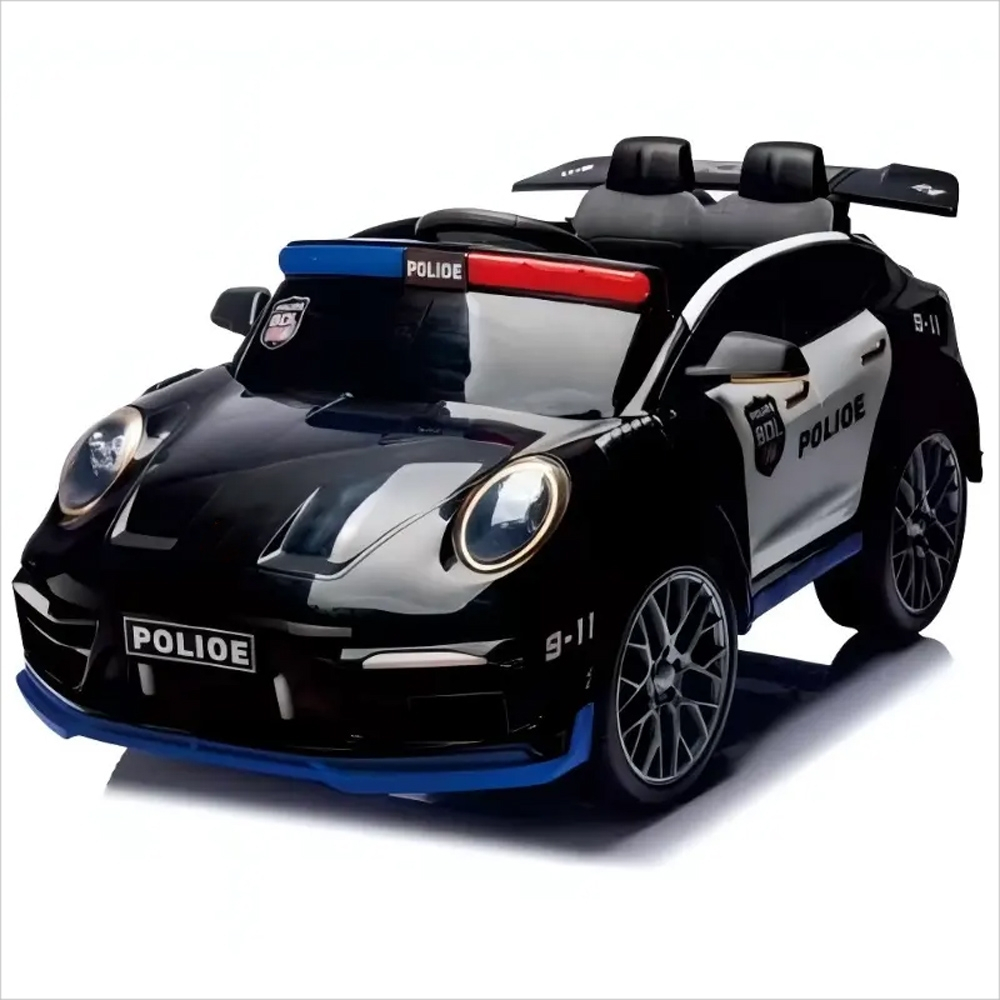 - Masina are design cool si o serie de caracteristici care ii vor atrage pe cei mici din primul moment. Astfel, bordul masinii este echipat cu butoane la indemana, care declanseaza functiile acesteia (pornire/ oprire, mers inainte/stop/mers inapoi, balans), dar si cu panou multimedia cu muzica si sunete de claxon si avertizare masina politie, bluethooth, USB, jack pentru conectarea statiei de emisie. Butoanele de pe volan declanseaza claxonul si comuta intre melodii. Scaunul ergonomic din plastic este prevazut cu centura. Accesul in interior se face prin deschiderea celor doua portiere. La pornirea masiniii sunt declansate luminile farurilor frontale, stopurilor spate, dar si luminile rosii si albastre de pe parbriz, precum si sunetul imitativ de pornire motor. Rotile late, din plastic ofera stabilitate in timpul deplasarii. Oglinzile laterale sunt pliabile, avand rol decorativ.