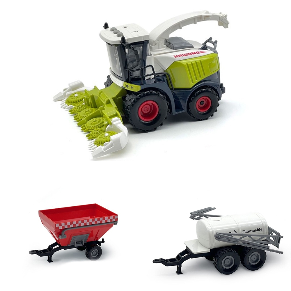 - Setul contine un utilaj agricol sub forma de combina, insotit de o cisterna si o remorca ce ofera un joc variat si plin de imaginatie pentru micii fermieri.