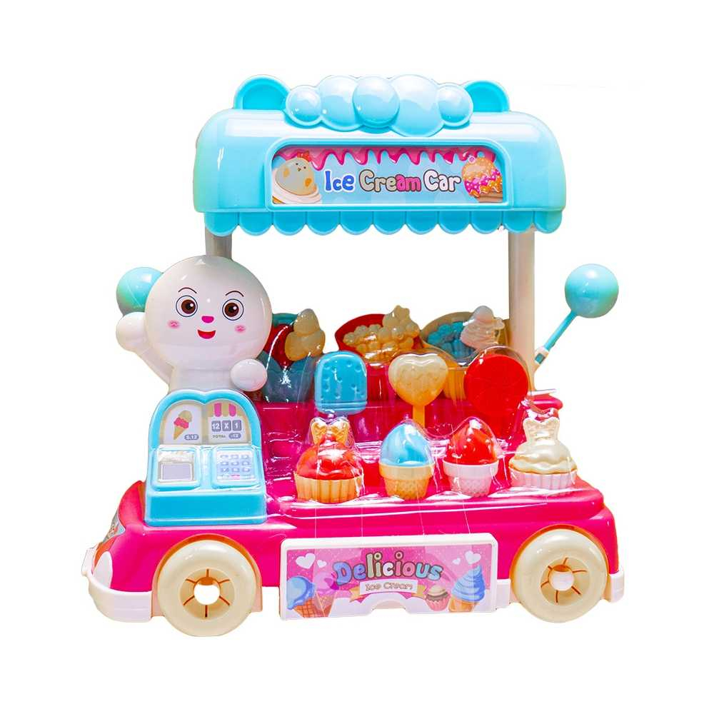 Masina de inghetata cu baterii si diverse accesorii. Jucaria emite sunete si lumini si incurajeaza imaginatia si jocurile de rol.
