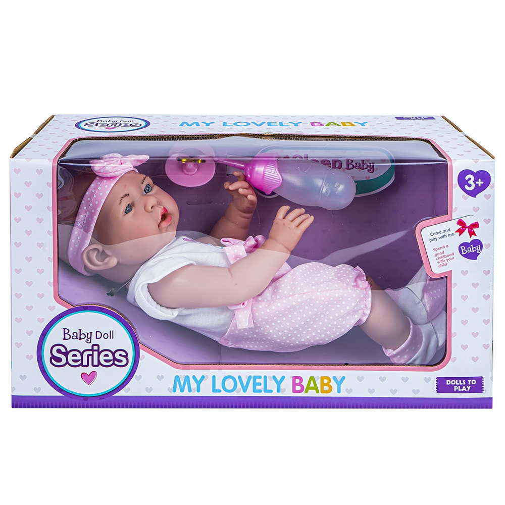 Biberonul si suzeta se vor dovedi si ele de ajutor de-a lungul zilei bebelusului! Pachetul contine:  1 x papusa cu salopeta , 1 x biberon, 1 x suzeta.