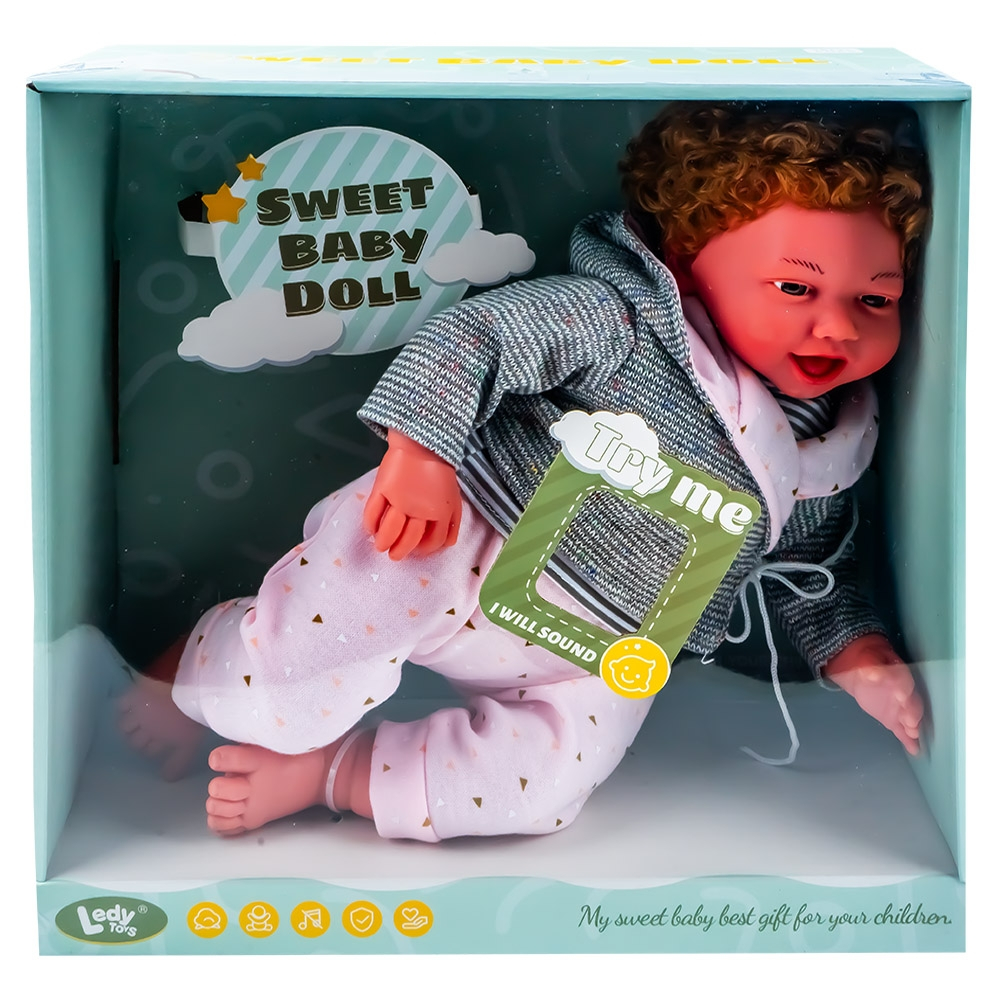 - Papusa poate fi apasat pe burtica pentru a spune tata, mama, plange, rade, sughita, eructeaza, ofteaza, suge, gangureste, tuseste, ingana, stranuta. Functia de sunet necesita 3 baterii AG13, incluse. Functia de sunet este declansata dupa scoaterea cutiei ce contine bateriile din burtica papusii, detasarea benzii din plastic care separa bateriile, reintroducerea dispozitivului in papusa si apasarea pe mijlocul acestei piese.