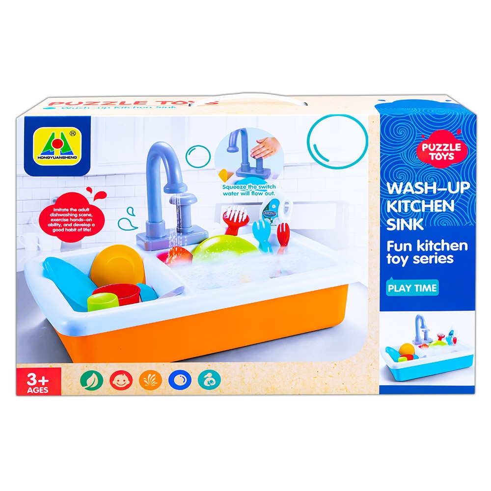 - Inainte de utilizare chiuveta necesita asamblarea celor 4 piese (vas chiuveta, bazin, robinet si pipa robinet). Dupa montare puneti apa in chiveta, ulterior apa putatnd fi pompata prin apasarea butonului de pe baterie. Astfel, in timpul jocului puteti spala cu adevarat vesela.