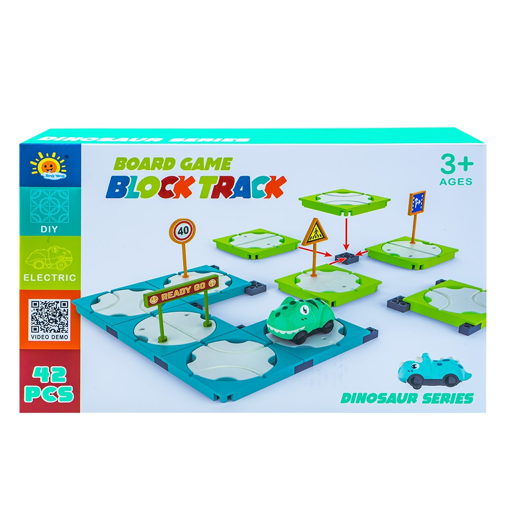 Cu acest set atractiv copiii pot construi o pista ce va deveni traseu pentru masinuta dinozaur, ceea ce promite o experienta incantatoare de joc. Conectati piesele pistei, apasati comutatorul, masinii, asezati-o pe pista si bucurati-va de actiune!
